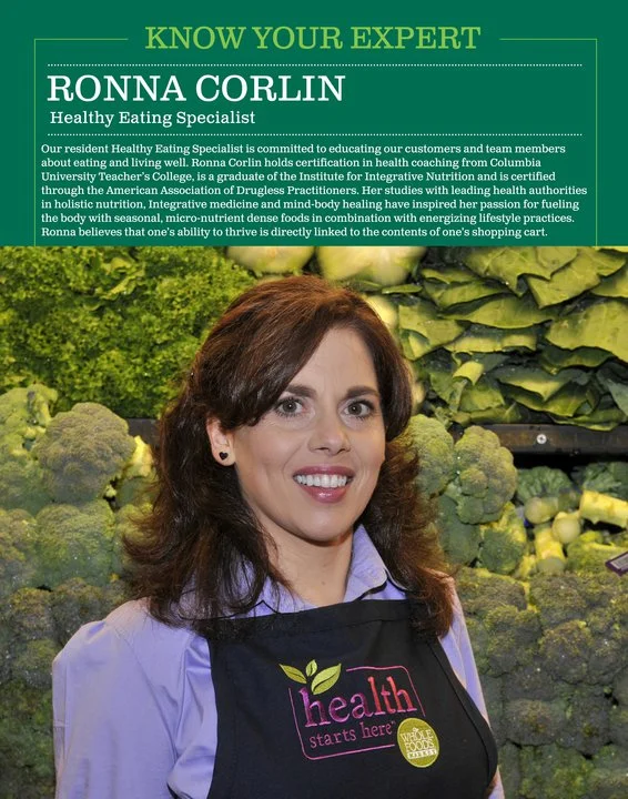 Invited to join a national team of healthy eating specialists at Whole Foods Market, I supported the launch of their national healthy eating program. Guided by an esteemed medical advisory board, I learned from notable ‘food as medicine’ physicians including Dr. Caldwell Esselstyn of the Cleveland Clinic (and President Clinton’s plant-based supporter in the fight against his heart disease diagnosis); Dr. David Katz, founding director of the Prevention Research Center at Yale University; Dr. Neal Bernard, founding president of the Physician's Committee for Responsible Medicine; and Dr. Joel Fuhrman, renowned family physician and nutritional researcher advocating micronutrient-dense eating for disease prevention and natural weight loss. I'm quoted in this article which covered the launch: Lifelong Health Starts Here at Whole Foods Market.