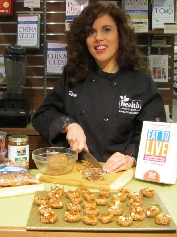 While healthy eating specialist for Whole Foods Market my job was to motivate customers, team members and community to reconfigure their plates in favor of fresh, local, seasonal, nutrient-dense, plant-strong real food. My strategies for making healthy eating a lifelong habit included culinary support, educational talks, market tours, media training (pictured: Appearance on News 12 CT's TV program 'What's Cooking') and continuing plant nutrition education (pictured with Joel Fuhrman, MD and fellow educators.)